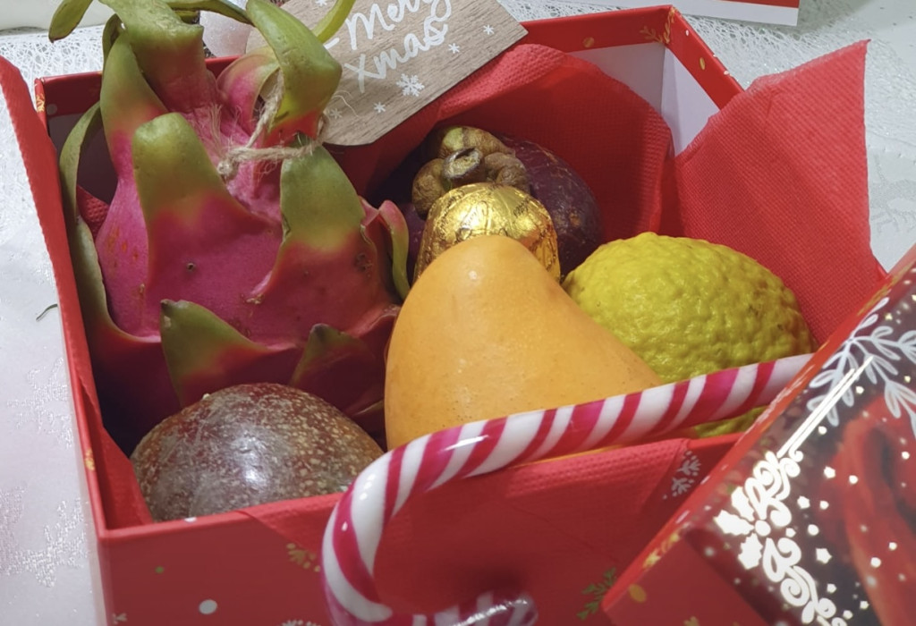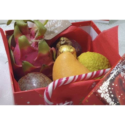 1 BUC MANGO KENT PERU,1 BUC FRUCTUL DRAGONULUI ROSU,1 BUC GUAVA,1BUC MANGOSTEEN,1 FRUCTUL PASIUNII,BETISOARE DE SCORTISOARA ,CIOCOLATA DE LAPTE.